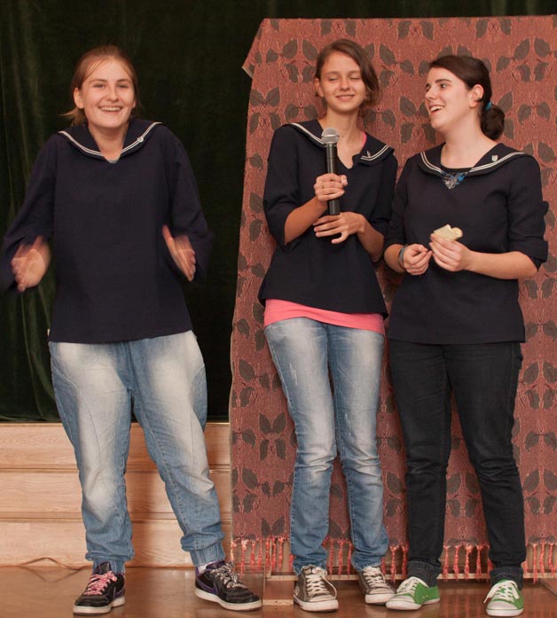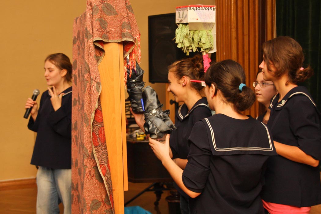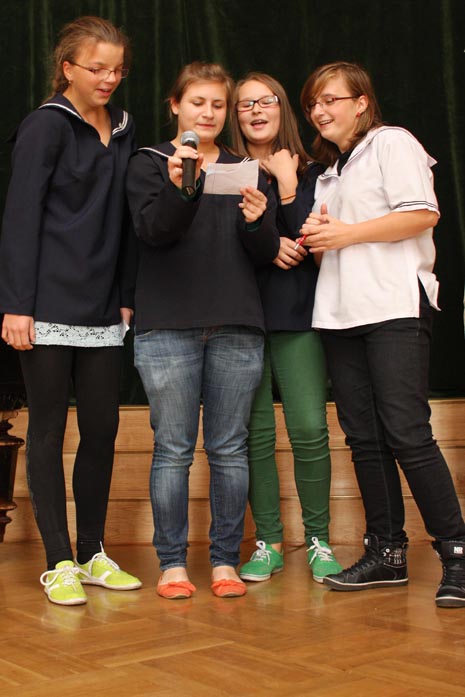 27.09.12 Po trzech latach znowu wracamy do Dnia Wspólnoty pomysłu samorządowego. Przebieg jego był klasyczny - pierwsza godzina gierek integracyjnych i druga wydobywająca to co najlepsze z głębokiej studni talentów młodych urszulanek. Dziewczyny podzielone na osiem grup przygotowywały przedstawienie kukiełkowe, mając do wyboru tylko mopa, butelkę, pudełko, szmatki, sznurek i przybory papiernicze. W efekcie otrzymaliśmy prześmieszne przedstawienia. W innej części dnia te same grupy układały nowe, polskie, słowa do refrenu piosenki "Call Me Maybe"" Carly Rae Jepsen. Kowery miały mieć nowe tematy, jak na przykład "Spojrzał na mnie...", "Utyłam, znowu..." lub "Pryszcz". Jedna z grup śpiewała: