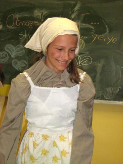 | Przewodnicząca kl 1 - Ala Adamska z klasowym symbolem - Żabkę